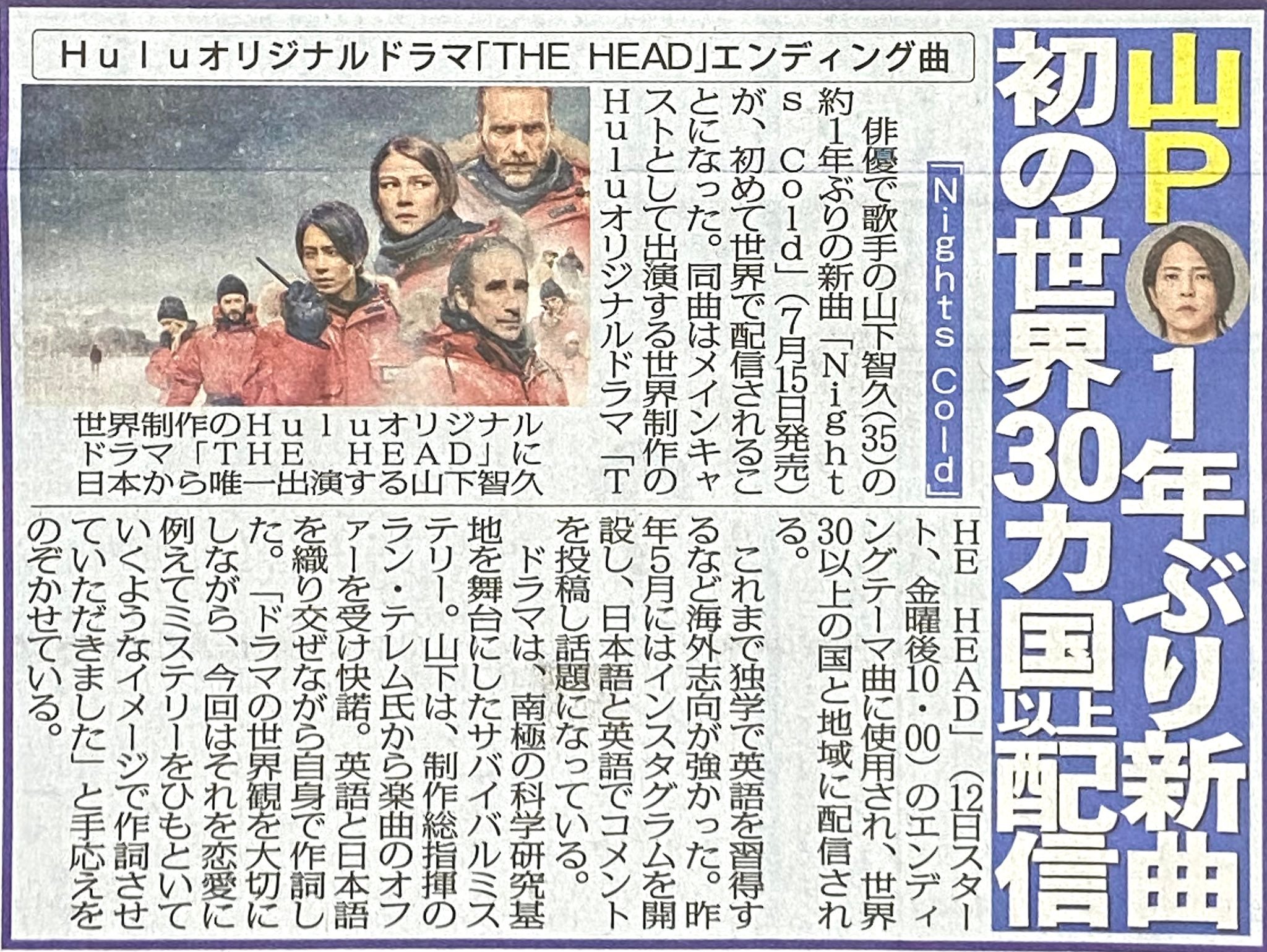 另外值得一提的是,山下智久即将在七月份发行的新曲《Nights Cold》也被《极地暗杀》选作了片尾曲。