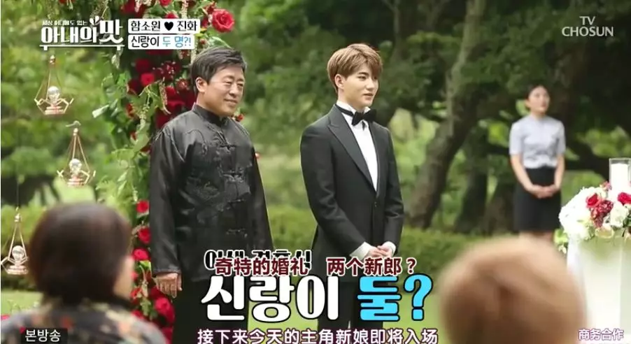 陈爸的画风就更耿直了,婚礼上迷迷糊糊的和新郎一起入场掀起了演播厅的狂笑。