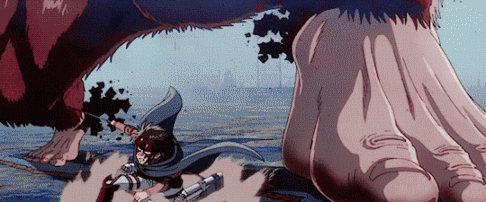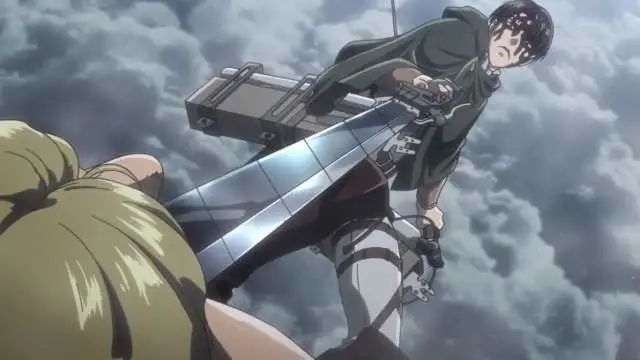 当调查兵团利用自杀式攻击吸引兽之巨人的注意时,兵长已经突然从烟幕中冲出,一阵爆砍。