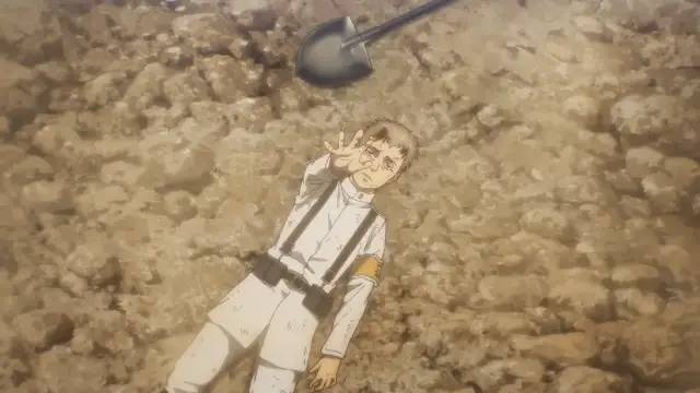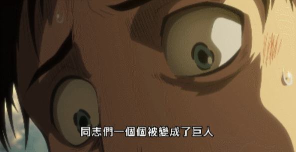 像这样酣畅淋漓的战斗场面在《进击的巨人》中还有很多。 比如,第一季中的巨人突然现身,就是另一种心理上的刺激。 前一秒大家还在开心地聊天,谈谈人生理想。 下一秒一阵闪电,巨人硕大的脸庞突然出现在了艾伦身后。