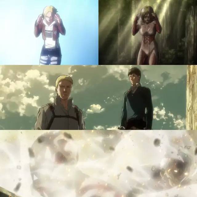 先是艾伦获得了巨人化的能力,可以大幅增强自己的力量。 之后,兵团里另外几名队友也都有巨人化的能力。
